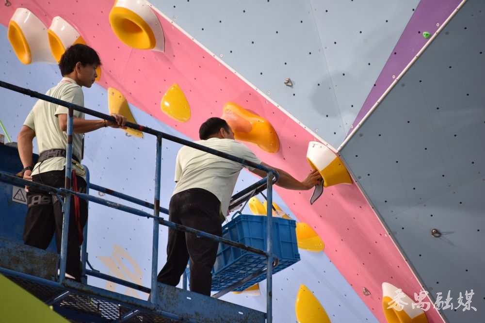 在赛场上,记者看到众多忙碌的身影。志愿者们从选手入场开始,便全程陪伴与守护。他们热情地引导选手进入场地,核对选手信息,确保每一位选手都能顺利、高效地完成入场流程。在比赛过程中,志愿者们时刻关注选手的状态,为他们递送饮用水、毛巾等物资,让选手们感受到贴心的支持与关怀。赛事工作人员则全神贯注地坚守在各自岗位上,为选手的安全与赛事的顺利进行护航。他们精心检查每一处攀岩设备,确保器械安全稳定,岩壁牢固和保护绳完好,在选手攀爬过程中,工作人员则紧盯每一个动作,确保选手们能在安全的环境下尽情发挥实力。