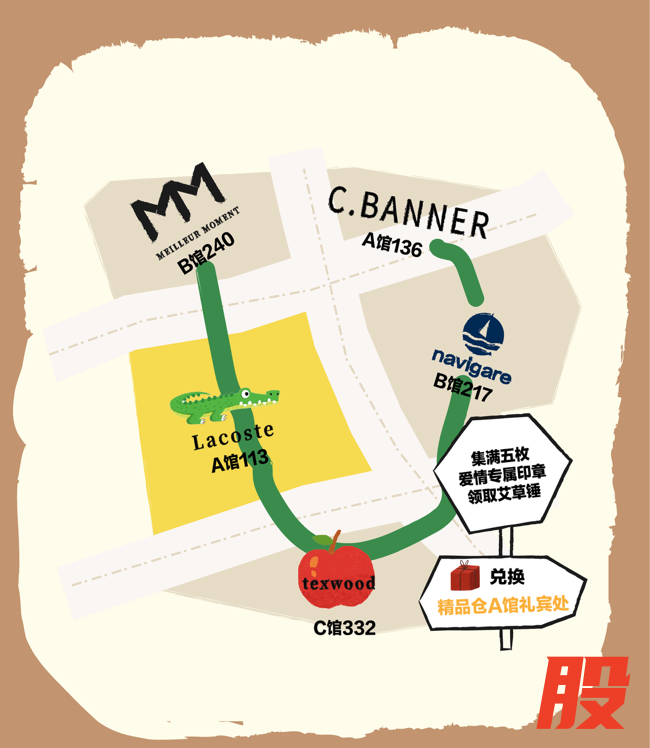 《马上有爱》情人节打卡(2.13-2.14):与伴侣携手打卡麦檬、Lacoste、萍果、千百度、小帆船五大特色店铺,集齐5枚专属爱情印章并完成指定小任务,即可兑换限定粉色养生艾草锤,让爱意与健康相伴。